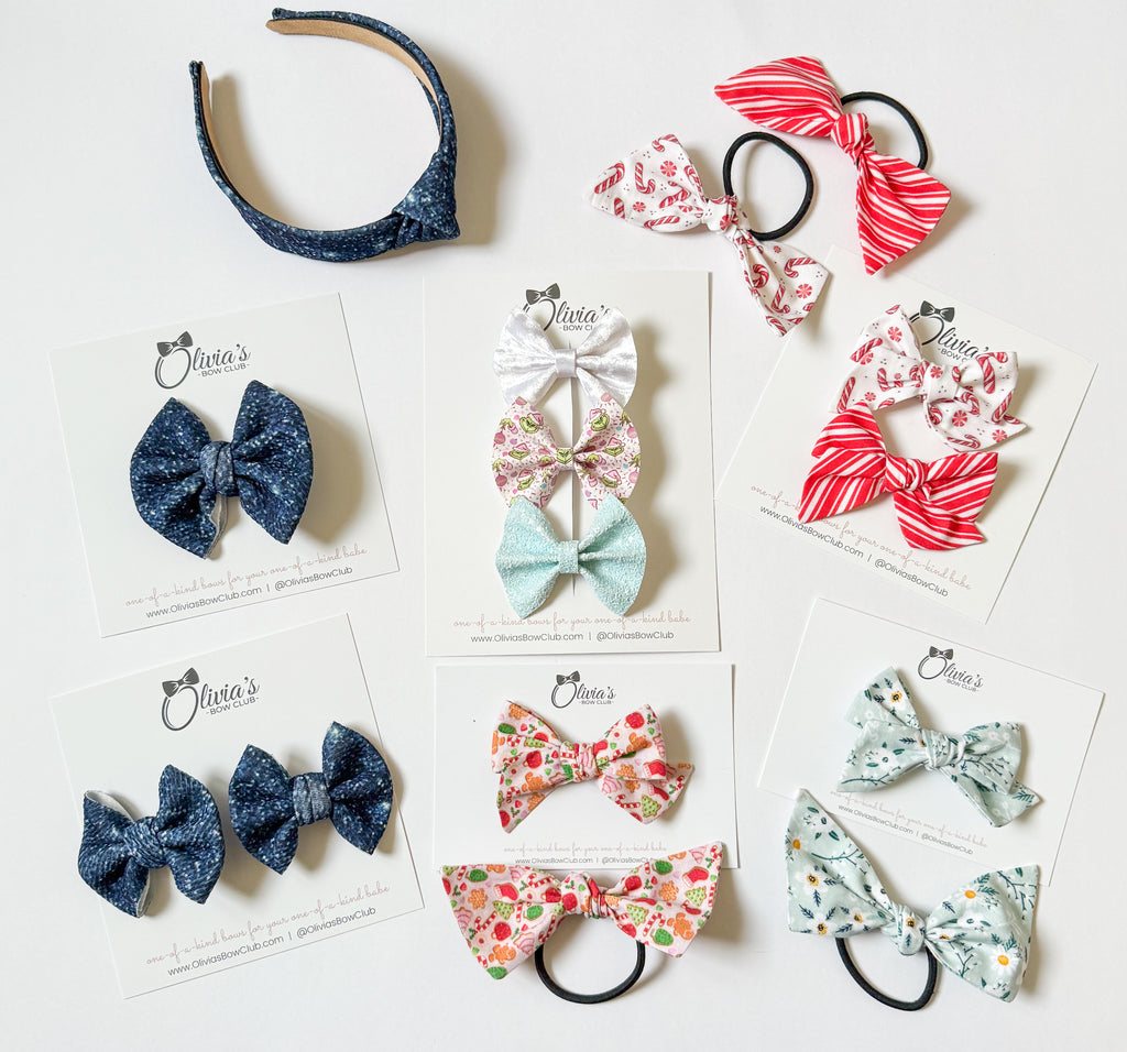 BOWS: Our bows are limited quantities and seasonal, so we do not accept regular returns for credit. However, if your bow is damaged or has an issue, we will absolutely take care of it for you and make sure you get a quality bow! Please email us at support@oliviasbowclub.com