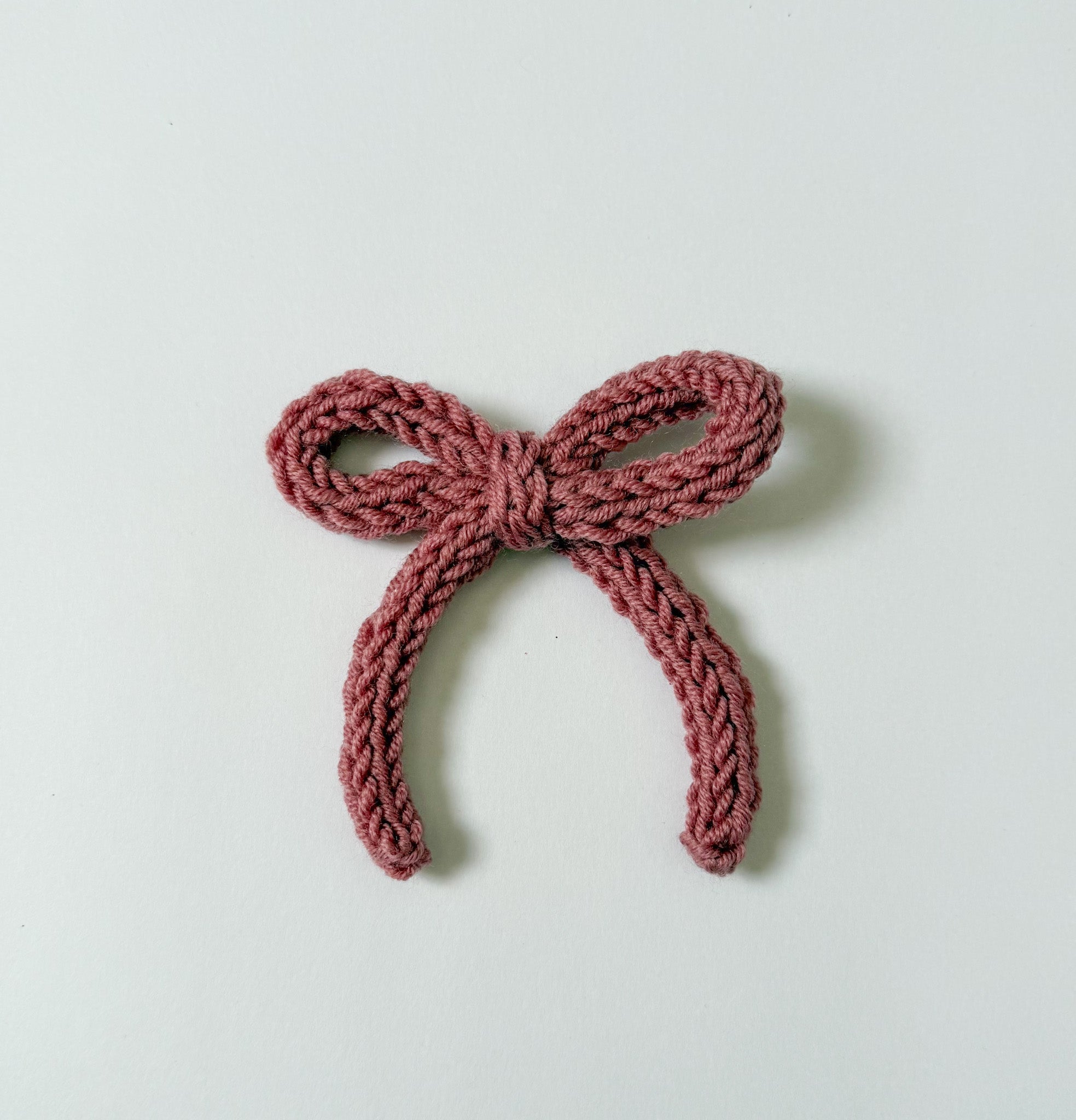 A SUPER soft rose/ mauve pink merino wool, hand knit into the sweetest bow. The perfect addition for Valentine's Day festivities!