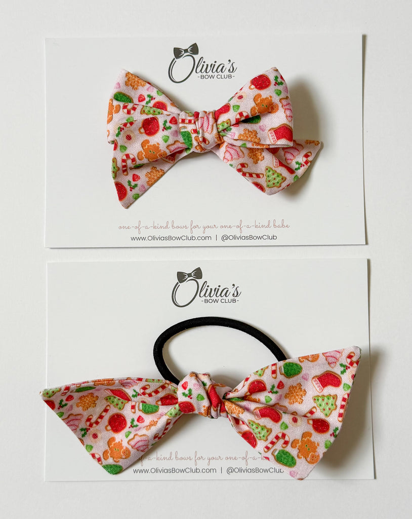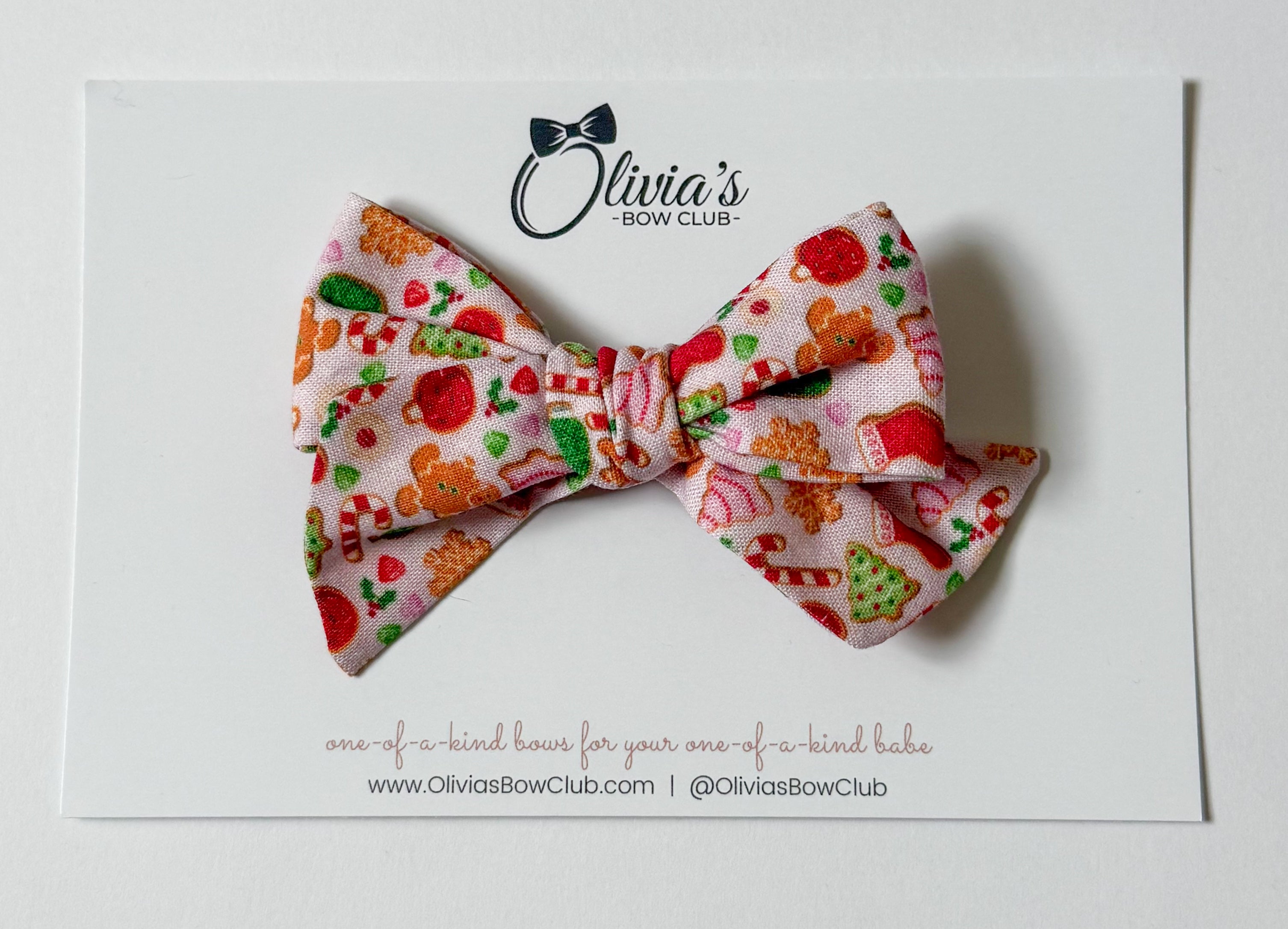 A sweet light pink bow sprinkled with the cutest little sugar cookies for your sweet babe.